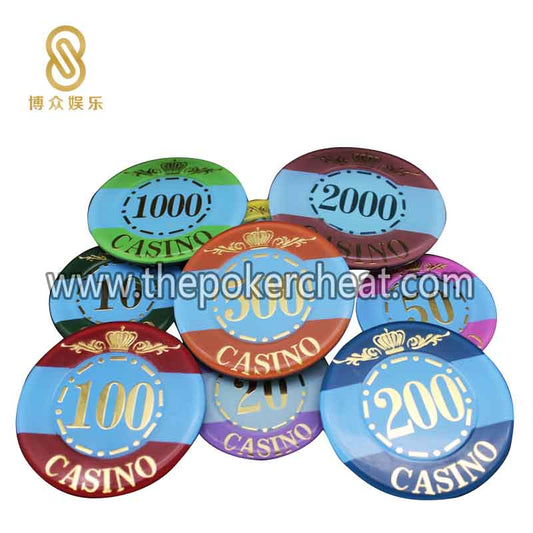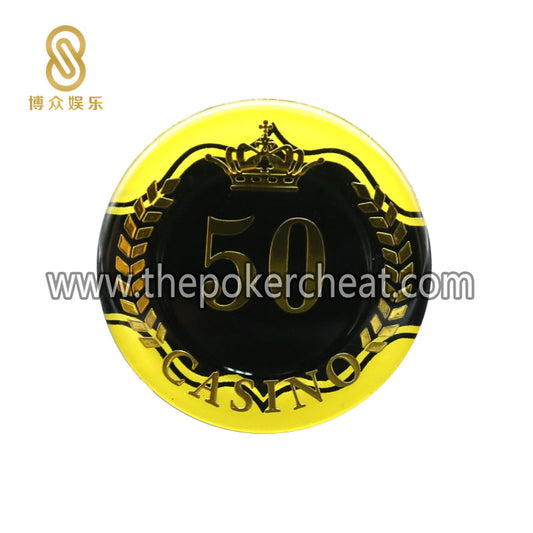 原厂设计高透亚克力烫金皇冠筹码片 UV紫光隐形防伪 扑克塑料筹码币
