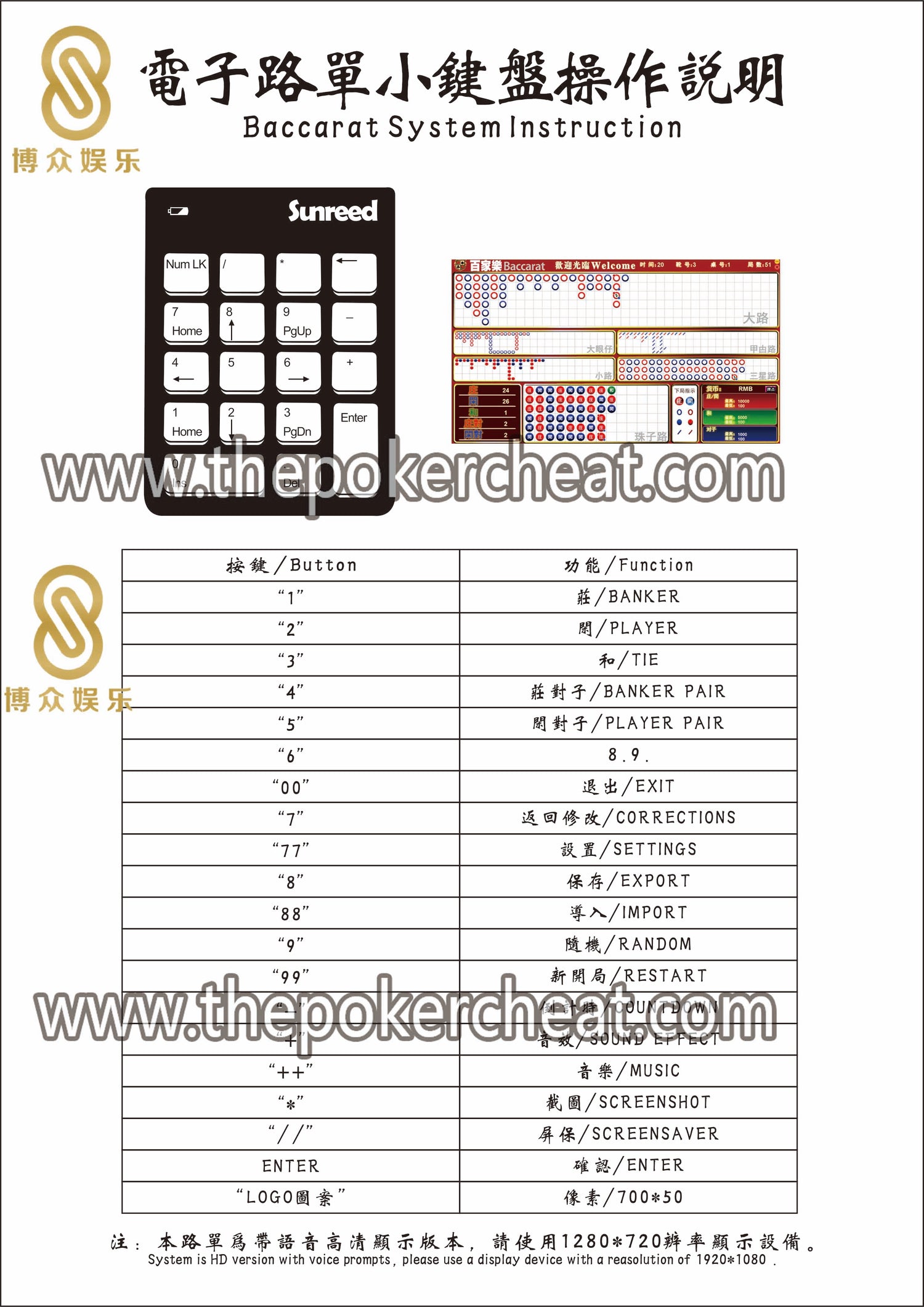 1.具有国际标准的珠仔路单、大路、大眼仔路、小路、甲由路(小强路)、三星露珠等显示功能;